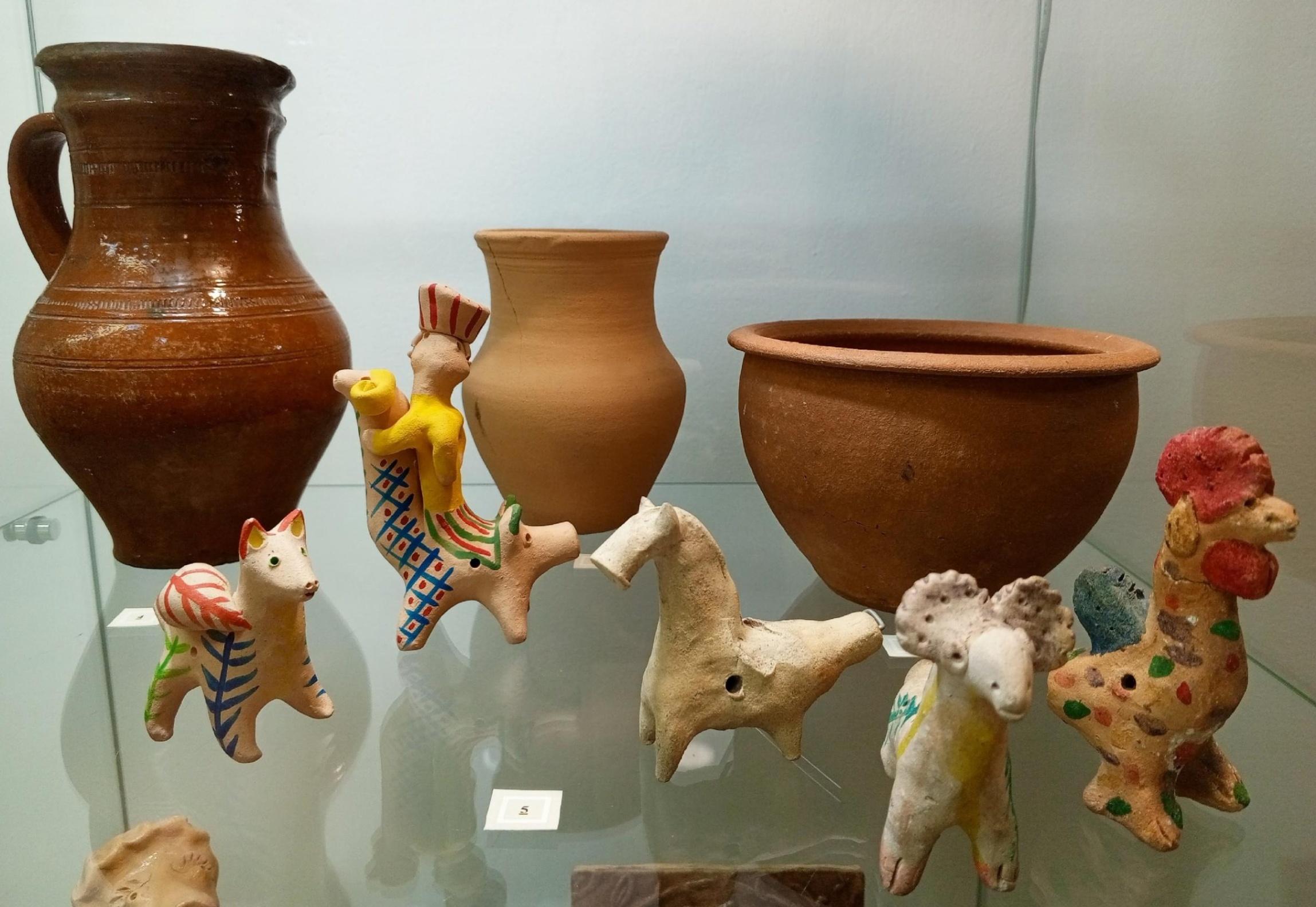В экспозиции можно увидеть как расписные, так и поливные фигурки. Среди представленных экспонатов — изделия известных народных промыслов: кожлянская и суджанская (Курская область), абашевская (Пензенская область), каргопольская (Архангельская область), романовская, добровская, распоповская (Липецкая область), старооскольская (Белгородская область), плешковская (Орловская область), хлудневская (Калужская область), жбанниковская (Нижегородская область), воронежская «заманка», карачунская (Воронежская область), чернышинская (Тульская область), александро-прасковьинская (Тамбовская область), унечская (Брянская область), вырковская (Рязанская область), таволожская (невьянская) (Свердловская область). Посетители увидят фигурки людей (барынь, кавалеров, всадников, мужиков, солдат) и животных (козликов, барашков, коровок, гусей и др.).