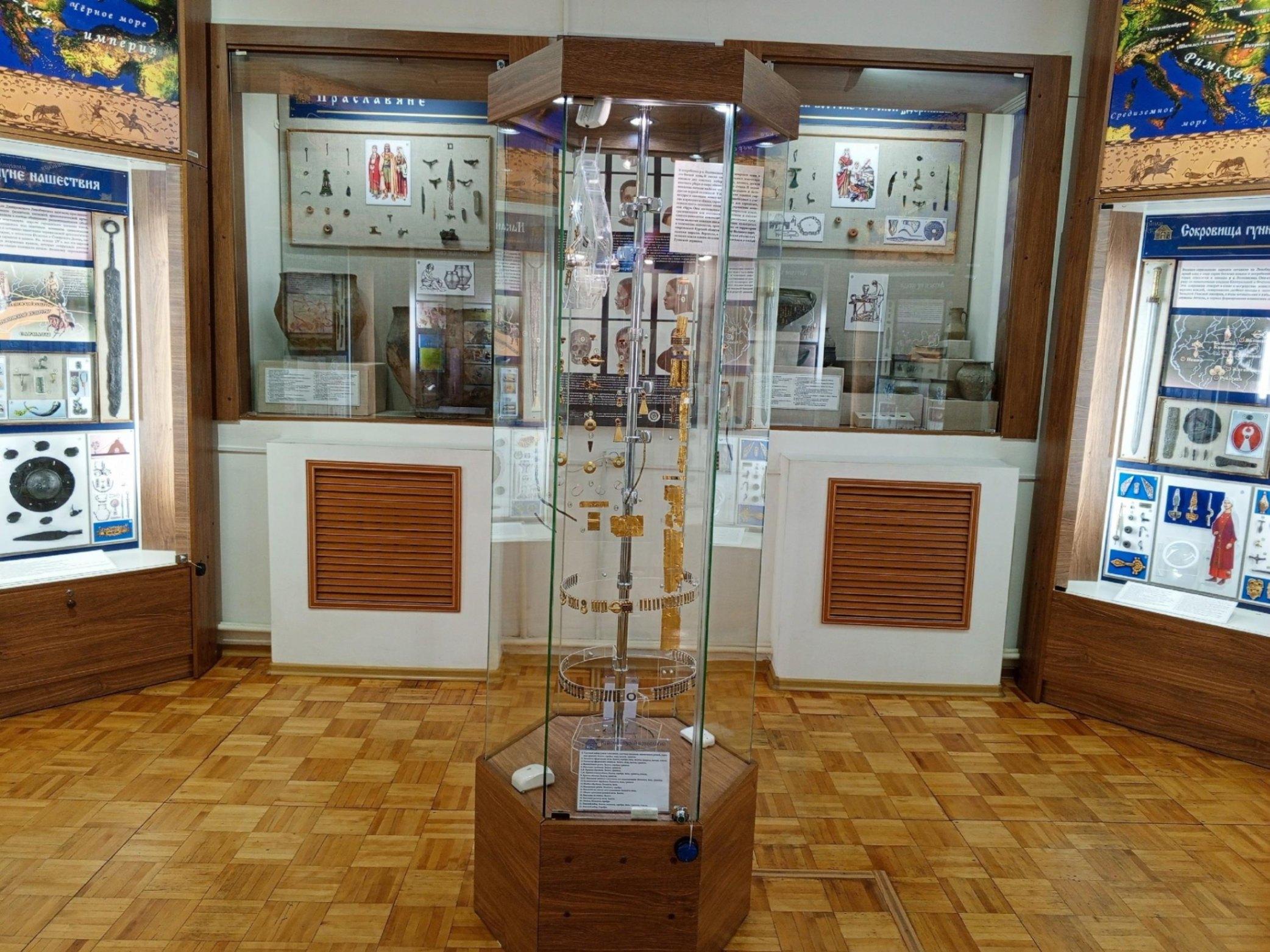 Экспозиция знакомит посетителей с уникальной коллекцией из разрушенного кладоискателями захоронения у с. Волниковка Фатежского района Курской области – самого северного среди известных ныне в России погребений гуннского времени.